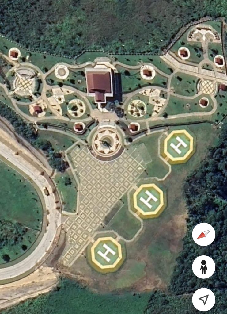Sementara itu, dari tangkapan citra satelit di salah satu sudut yang berjarak hampir 200 meter dari bendungan Way Apu, telah berdiri salah satu kawasan megah. Terdapat tiga helipad di lokasi itu.