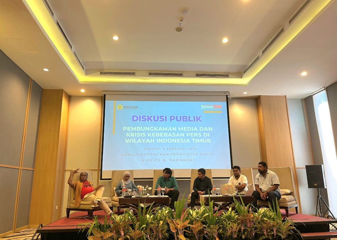 Diskusi publik bertajuk Pembungkaman Media dan Krisis Kebebasan Pers di Indonesia Bagian Timur di Kota Sorong, Senin 2 Februari 2025.