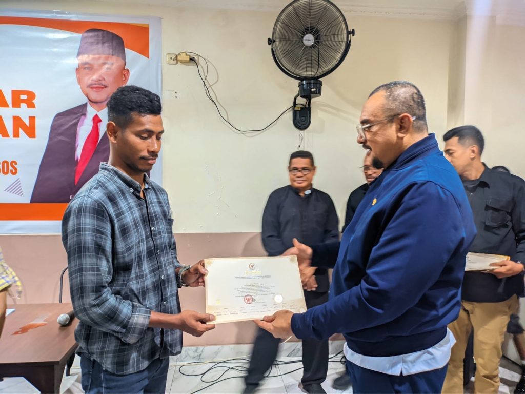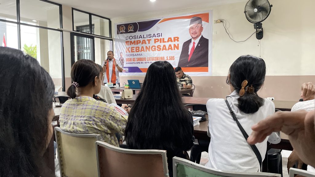 AMBON-DM : Anggota Majelis Permusyawaratan Rakyat (MPR) RI yang juga anggota Komisi I Dewan Perwakilan Daerah (DPD) RI Bisri As Shiddiq Latuconsina bekerja sama dengan Angkatan Muda Gereja Protestas Maluku (APGPM) Ambon menggelar sosialisasi empat pilar Kehidupan Berbangsa dan Bernegara di Jombeks Cafe. Minggu,29 Juni 2025.
