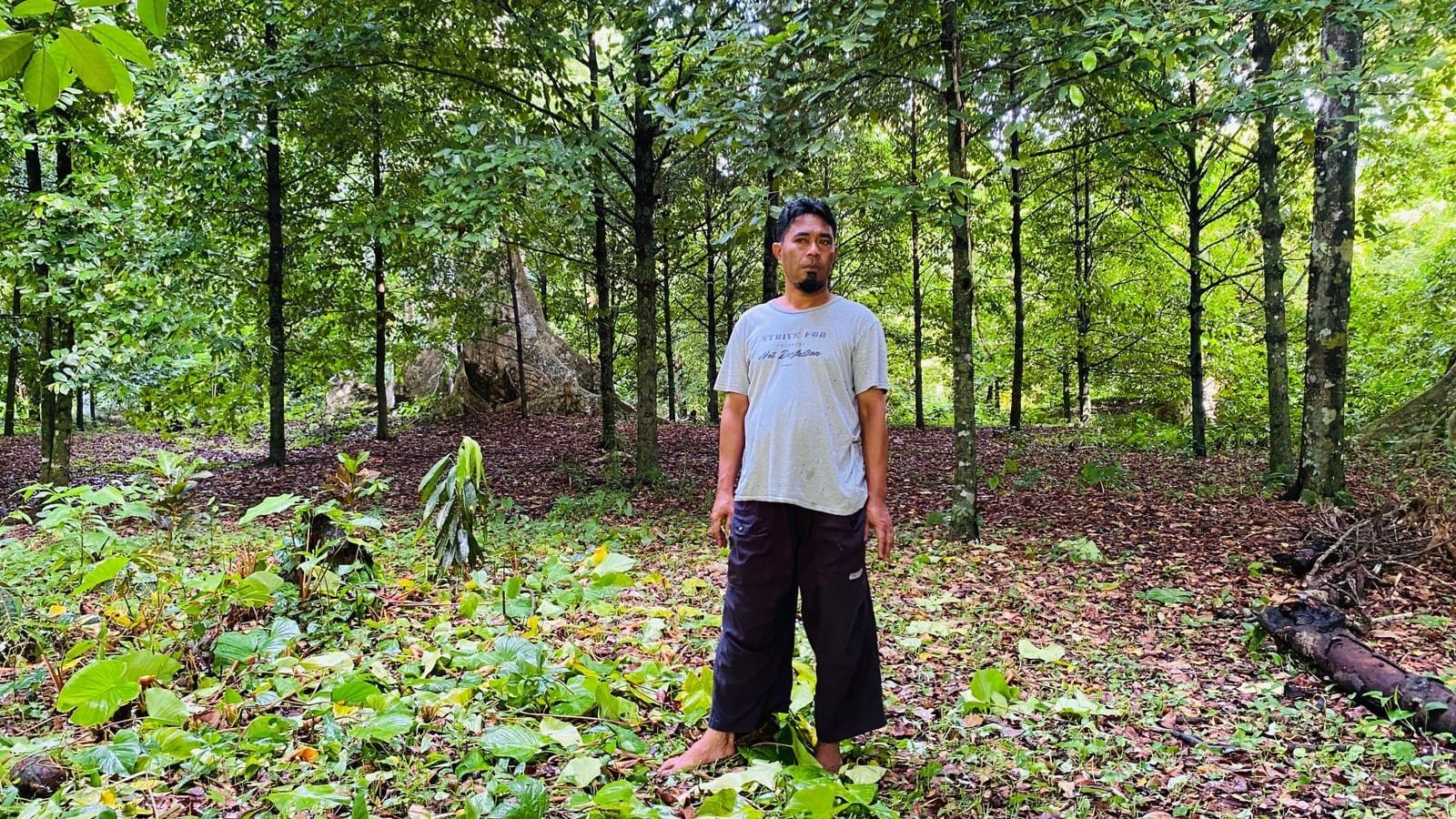 Disampingnya, Bahar Harun mengangguk pelan. Tubuhnya tegap, kulit sawo matang. Ia yang mendampingi perjalanan saya hari itu—Rabu, 17 Desember 2025—menyusuri kebun-kebun pala.