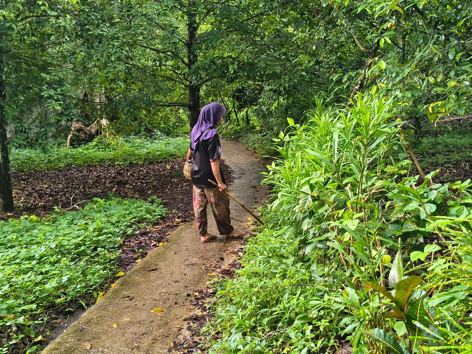 Selain itu, didukung pohon kenari yang rimbun sebagai pelindung alami. “Alhamdulillah, pala yang rusak tidak terlalu parah,” jelasnya sembari berujar, suaminya juga turut mempraktikkan.