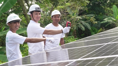 Zagy Berian dalam rangka pelatihan operasional Pembangkit Listrik Tenaga Surya (PLTS) yang digunakan untuk pengairan dan penyimpanan cold storage untuk hasil pertanian di Desa Pati bersama Desabumi.